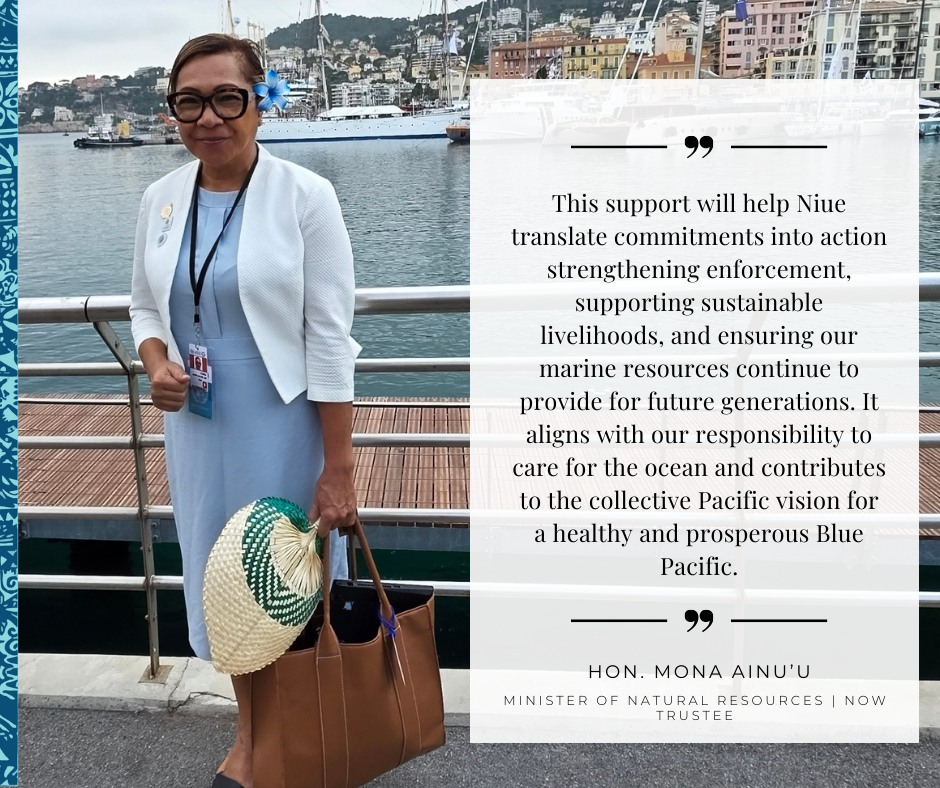 Oue tulou tulou Coral Pasisi and Hon. Mona Ainu’u for, with such a quick turnaround from UNOC3 in Nice, setting sail again to harness this opportunity for Niue.